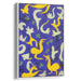 Introducing 'Frolicsome Blue Beings,' a vibrant and dynamic abstract canvas art that brings to life a whimsical world of playful creatures against a rich, deep blue backdrop. This captivating artwork features stylized, yellow beings that blur the lines between fantastical birds and mammals, engaging in a lively dance of shapes and colors.