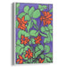 Fusion of Crimson Petals: Vibrant Red-Orange Blossoms on Purple Canvas Art Print