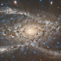 The dynamic and fluid movement of galactic material is vividly depicted, spiraling outward from the bright nucleus, creating a mesmerizing contrast of colors that enhances the scene's depth and intricacy. The interplay of golden, white, gray, blue, and red hues invites contemplation of the boundless expanse of the universe, captivating viewers with its celestial beauty.