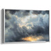 Introducing 'Golden Halo Illumination,' a mesmerizing canvas art piece that captures the ethereal beauty of a dramatic sky, where tumultuous clouds part to unveil a serene glimpse of the golden sun. This artwork skillfully portrays the intense interplay between light and shadow, with voluminous clouds rendered in various shades of gray, white, and subtle blues, enveloping the canvas in a dynamic, almost tumultuous embrace.