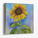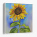 Introducing "Golden Sunlit Tranquility: Nature's Golden Blossom on Tranquil Blue Canvas," an exquisite still life canvas art that captures the essence of a vibrant sunflower set against a backdrop of calming blues and greens. This captivating artwork features a majestic sunflower as its focal point, with its striking yellow petals and rich brown center standing tall and proud.