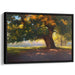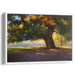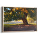 Introducing 'Golden Tranquility Serenade: Serene Landscape with Golden Foliage,' a mesmerizing canvas art print that transports viewers to a tranquil and enchanting scene of autumnal beauty. This captivating artwork showcases a majestic tree, its robust trunk and sprawling branches adorned with lush, golden-yellow leaves that flutter gently in a light breeze.