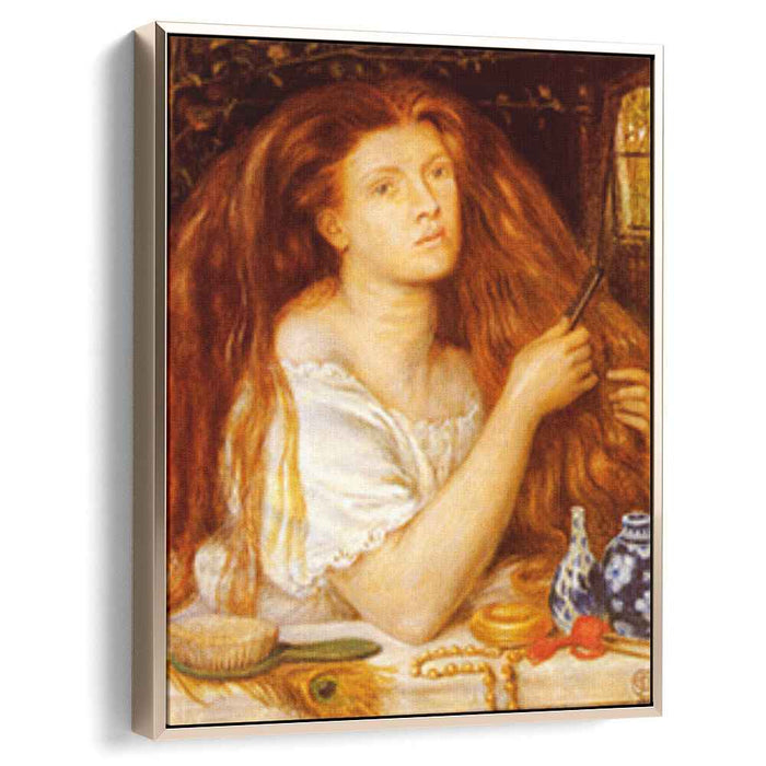 Immerse yourself in the enchanting world of Dante Gabriel Rossetti's "Golden Tresses" (1865), now available as a captivating canvas print. This iconic masterpiece embodies the Pre-Raphaelite movement's fascination with medievalism, symbolism, and the allure of feminine beauty.