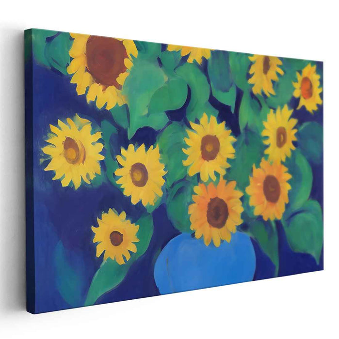 Decorate your walls with this high quality geometric HM Sunflowers art print on canvas. Whether you hang it in your living room, bedroom or office, this artwork is sure to add a touch of beauty and color to your room.
