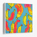 Brighten up your space with 'Island Beat Mix: Vibrant Banana and Papaya Pop Art Canvas', a lively and colorful masterpiece that will infuse your room with a burst of joy and whimsy. This captivating artwork features a playful depiction of bananas and papayas against a striking turquoise blue backdrop, creating a vibrant and dynamic composition.