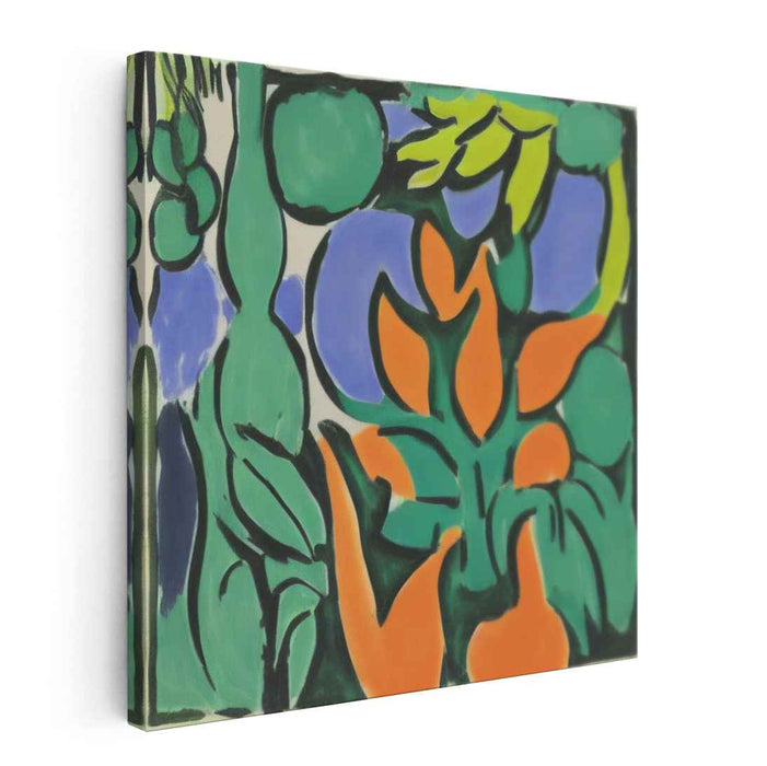 Embracing a distinctly modern and abstract style, 'Lush Botanical Abstraction' draws inspiration from the Fauvism movement, known for its bold use of color and expressive qualities. Echoing the spirit of artists like Henri Matisse, the piece employs a flat yet bold approach to shapes, relying on color to define space and form rather than intricate details, creating a harmonious balance between simplicity and intensity.
