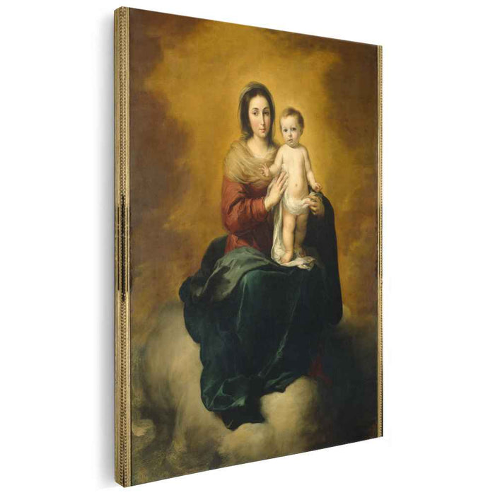 "Madonna in the Clouds" is a prime example of Murillo's Baroque style, which blended the naturalism of the Italian Renaissance with the emotional intensity of Spanish art. Murillo's works were highly sought after in his lifetime, and their popularity continues to this day, as evidenced by this exquisite canvas print.