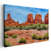 Introducing 'Majestic Desert Rock Formations: A Watercolor Landscape,' a captivating canvas art piece that transports viewers to a breathtaking desert vista reminiscent of the iconic landscapes of the American Southwest. This stunning artwork showcases towering red sandstone formations that command the middle ground, contrasting against a vast, clear blue sky that stretches endlessly above.