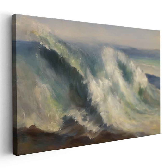 The mood of the piece is profoundly dramatic and awe-inspiring, eliciting feelings of reverence and admiration for nature's grandeur. Ideal for a living room or office setting, this artwork radiates dynamic energy and serves as a captivating focal point that invites contemplation and appreciation of the ocean's majestic power.