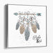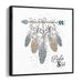 Introducing 'Midnight Reverie,' a captivating canvas art print that beautifully captures the essence of a dreamcatcher, a symbol deeply rooted in Native American culture, symbolizing protection and spirituality. This intricate artwork features a meticulously designed dreamcatcher adorned with a harmonious arrangement of feathers, each intricately detailed to showcase a variety of patterns and textures, including speckles and soft, flowing lines.