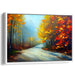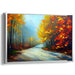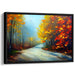 Introducing 'Mossy Trail Whisper,' a mesmerizing canvas art that beckons viewers into the heart of a magical autumn forest, where a tranquil pathway winds through a lush woodland adorned in the vibrant hues of fall. This enchanting scene captures the essence of autumn's warm embrace, with vivid yellows and fiery reds dominating the trees on either side of the path.
