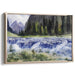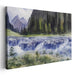 Step into the serene beauty of 'Mystic Cascades of Verdant Canopy: Serene Waterfall and Forest Landscape,' a captivating canvas art that transports you to an untouched natural oasis. This exquisite artwork showcases a majestic waterfall plunging into a peaceful river, surrounded by dense pine forests and distant mountain peaks, creating a scene of breathtaking grandeur and tranquility.