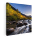 Introducing "Mystic Glade Melody," a mesmerizing canvas art print that transports viewers to a tranquil river setting, where the gentle flow of water meanders through a bed of dark stones, set against a backdrop of a majestic forest-clad mountain in the golden embrace of autumn. This captivating artwork captures the essence of nature's calming and rejuvenating power, offering a serene escape into a world of natural beauty and peace.