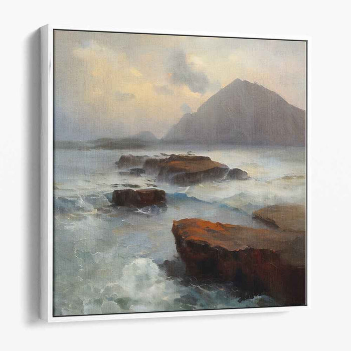 Perfect for spaces that seek to evoke calm and contemplation, such as a living room, study, or beach house, 'Mystic Mountain Seascape' invites viewers to immerse themselves in a tranquil setting where the forces of nature collide in a mesmerizing display of beauty and power.