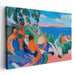 Immerse yourself in the lively and refreshing world of 'Nautical Nouveau,' a stunning canvas art print inspired by the coastal landscapes and the vibrant color palette of Henri Matisse. This captivating artwork transports you to a tranquil coastal scene teeming with elegantly posed figures, surrounded by lush tropical foliage and a serene sea horizon.