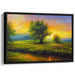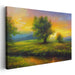 Introducing "Noble Woods Serenity: Tranquil Landscape with Majestic Trees," a mesmerizing landscape canvas art that transports viewers to a serene countryside awakening at dawn. This captivating artwork showcases a tranquil scene dominated by two majestic trees standing proudly in a lush, grassy field, with the larger tree serving as the central focal point, exuding a sense of grandeur and stability.