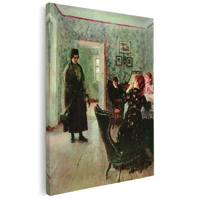 Unveil the narrative depth within Ilya Repin's captivating painting, "Not Expected" (1898). This evocative masterpiece, meticulously reproduced on high-quality canvas, invites you to delve into a poignant world of unexpected encounters and the heart-wrenching emotions they evoke.