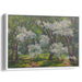 The canvas comes alive with the artist's skillful use of a rich palette dominated by various shades of green, harmoniously intertwined with the vivid whites of the blossoms. Subtle hints of brown and grey in the tree trunks and the path provide a grounding contrast to the ethereal white and green hues, creating a visually captivating composition.