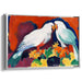 Introducing "Paradise Garden Aviary: Vivid Parrots in Exotic Garden," a mesmerizing portrait canvas art that transports viewers into a lush tropical paradise, where two white parrots captivate amidst a riot of vibrant tropical flowers. The artist's adept use of bold, vivid colors creates a stunning contrast between the parrots' pristine white feathers and the fiery reds, deep purples, and lush greens of the backdrop, evoking a sense of dynamic energy and visual splendor.