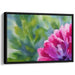 The focal point of this artwork is the blooming flower, depicted in vibrant shades of pink and magenta, delicately accented with touches of white that accentuate its intricate petals. Set against a backdrop of deep greens and blues, the composition exudes a dreamlike quality, inviting viewers to immerse themselves in the serene allure of nature's splendor.