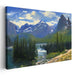 Introducing 'Peaceful Horizon Reflections: Tranquil Landscape Canvas Art Print,' a captivating masterpiece that transports you to the serene beauty of a mountainous landscape, reminiscent of the majestic Rocky Mountains. This breathtaking artwork captures towering peaks dusted with snow, soaring towards a sky adorned with fluffy white clouds.