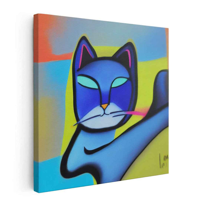 Bring a touch of modern artistry and playfulness into your home with "Playful Paws: Abstract Blue Cat Canvas Art Print." This piece not only serves as a visual delight but also as a conversation starter, adding character and charm to your living space.