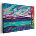 Step into the mesmerizing world of 'Psychedelic Horizon: A Vivid Expressionist Landscape,' a canvas art print that pulsates with vibrant colors and emotional depth. This captivating piece showcases a dynamic yet serene scene of a breathtaking sunset over a tranquil lake, enveloped in a symphony of pink, orange, and deep blue hues that ignite the sky.