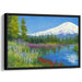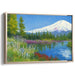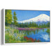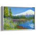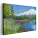 Step into the enchanting world of 'Radiance of Earth: Luminous Landscape Oil Painting,' a mesmerizing artwork that transports you to a serene mountainous paradise. This stunning piece showcases a grand snow-capped mountain dominating the backdrop against a clear azure sky, creating a striking contrast that captivates the eye.