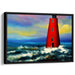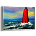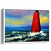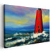 Resilient Beacon: Contemporary Realist Red Lighthouse Amidst Stormy Seas Canvas Art Print
