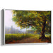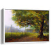 Introducing "Rural Rhapsody Journey," a mesmerizing landscape canvas art piece that transports viewers to a serene countryside path basked in the gentle light of early dawn, evoking a profound sense of peace and nostalgia. This captivating artwork showcases a majestic tree adorned with lush, vibrant foliage in a harmonious palette of green, yellow, and subtle hints of orange, standing tall against the backdrop of a meandering dirt path that leads towards a hazy, light-infused horizon.