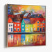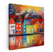 Introducing 'Sails Of Spectrum Harbor: Vibrant Waterfront Townscape,' a mesmerizing canvas art print that transports viewers into a harmonious blend of vivid colors and dynamic composition, capturing the essence of a serene yet lively waterfront scene. This captivating artwork showcases a row of charming, multi-colored houses, each painted in bold and distinct hues like red, blue, orange, and yellow, casting enchanting reflections on the tranquil waters below.