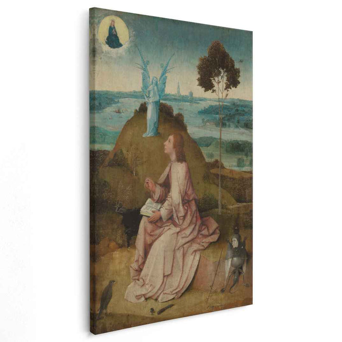 Uncover the captivating mysteries of Hieronymus Bosch's iconic masterpiece, "Saint John the Evangelist on Patmos" (1485). This hauntingly surreal painting, now meticulously reproduced on high-quality canvas, invites you to delve into Bosch's otherworldly imagination and explore the depths of religious allegory.