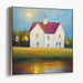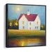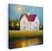 Step into the tranquil embrace of "Scarlet Homestead Vision," a captivating countryside house with a red roof canvas art print that transports you to a peaceful evening scene bathed in the gentle glow of the moonlight. This enchanting artwork features a charming two-story house, painted in a pristine white hue, adorned with a striking red roof that stands out elegantly against the backdrop of a serene evening sky.