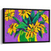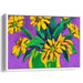 Introducing 'Solar Flora Suite,' a mesmerizing canvas art print that captures the essence of bold and expressive yellow flowers against a rich purple background. This artwork bursts with life and energy, as the vibrant flowers leap off the canvas with their dynamic and lively petals.