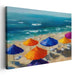 Introducing 'Sunshade Mirage,' a vibrant beach scene canvas art print that immerses viewers into a tranquil coastal setting, adorned with a delightful array of colorful umbrellas set against the sandy shore. This captivating artwork captures the essence of a summer day at the beach, radiating relaxation and joy.