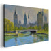Introducing the mesmerizing "Surreal Cityscape: Tranquil River and Floating Bottle" canvas art print, a captivating blend of reality and fantasy that transports viewers to a dreamlike urban oasis. This enchanting artwork centers around a serene river mirroring the lush greenery and architectural marvels that flank its tranquil waters.