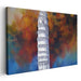 The mood of the artwork is both awe-inspiring and slightly surreal, making it a perfect addition to spaces like a living room or an office where its vibrant colors and dynamic composition can be fully appreciated. The Leaning Tower of Pisa, a symbol of architectural wonder, is the primary subject of this piece, set against a fantastical, almost dream-like background that mesmerizes the viewer.