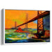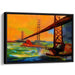 Introducing "Tangerine Overpass Impressions," an electrifying canvas art print showcasing a vibrant and expressive depiction of a famous suspension bridge, reminiscent of the iconic Golden Gate Bridge. This captivating artwork mesmerizes viewers with its bold and dramatic color palette, featuring a fiery orange sky that serves as a powerful backdrop contrasting beautifully against the deep blues and greens of the water below.