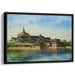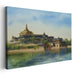Introducing "Temple Tranquility," a mesmerizing canvas art print that transports viewers to a serene traditional Eastern temple complex gracefully situated by the water's edge. This captivating artwork meticulously captures the architectural splendor of the temple with its intricate golden pagodas and elaborate wooden carvings, set against a backdrop of tranquil waters.