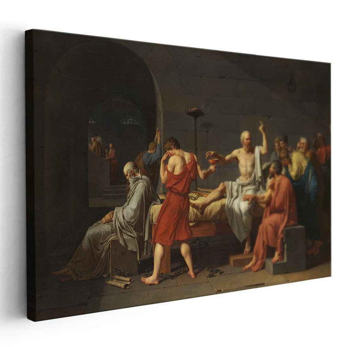 Unveil the timeless masterpiece, "The Death of Socrates" by Jacques-Louis David, now available as a stunning museum-quality canvas print. This iconic work captures the final moments of the renowned philosopher, Socrates, as he faces execution with unwavering dignity and courage.
