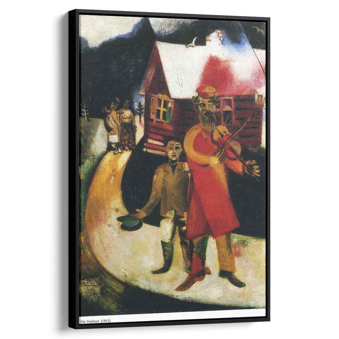 Step into the vibrant world of Marc Chagall's "The Fiddler," a captivating oil on canvas masterpiece created in 1914. This iconic work, now meticulously reproduced on high-quality canvas, invites you to explore its enchanting depths and unravel its imaginative narrative.