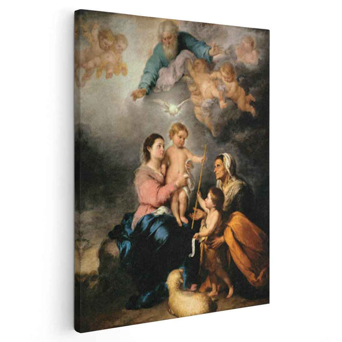 Step into the hallowed realm of Bartolomé Esteban Murillo's "The Holy Family (The Seville Virgin)," a masterpiece that radiates love, devotion, and artistic brilliance. Painted around 1670, this captivating artwork now comes to life on high-quality canvas, inviting you to immerse yourself in its timeless beauty.