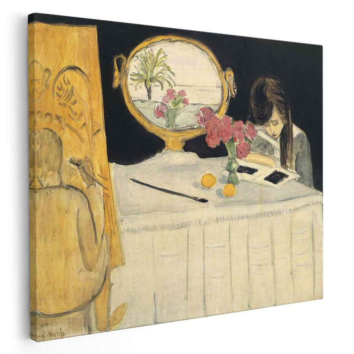 Immerse yourself in the vibrant world of Henri Matisse's captivating painting, "The Painting Lesson." Created in 1919 during the artist's transformative "Fauve" period, this masterpiece showcases Matisse's revolutionary approach to color and form, now brought to life on high-quality canvas for your viewing pleasure.