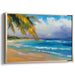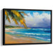 Introducing 'Tide's Whispered Secrets,' a mesmerizing canvas art print that whisks you away to a serene tropical paradise, capturing the essence of a peaceful beachside scene where the beauty of the ocean meets the tranquility of the shore. This captivating artwork immerses viewers in a world of vibrant blues and calming greens, where the sandy shoreline glistens under the gentle caress of crystal-clear waves.