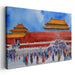 Introducing "Timeless Echoes Ripple Through Colors: Watercolor Scene of Historical Grandeur," a mesmerizing canvas art that transports viewers to a bustling historical setting reminiscent of the iconic Forbidden City in Beijing, China. This vibrant artwork captures the grandeur and dynamic life surrounding a historical structure, immersing the audience in a scene brimming with majesty and tradition.