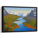 Introducing the captivating "Tranquil Horizon Whisper," a serene landscape canvas art print that transports viewers to a majestic mountainous region, where the sheer grandeur of nature unfolds in all its splendor. This breathtaking artwork showcases a tranquil river meandering through lush forests, embraced by towering, snow-capped peaks that stand as sentinels of the wilderness.