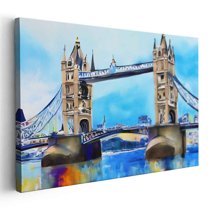 Introducing 'Urban Architectural Iconography,' a mesmerizing canvas art that beautifully captures the timeless allure of London's iconic architectural gem, the Tower Bridge. This enchanting artwork meticulously depicts the grandeur and intricate details of the bridge, set against a backdrop of a vibrant sky that immerses viewers in a scene of tranquility and elegance.