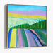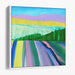 Introducing 'Urban Prairie Impressions: Contemporary Countryside Canvas Art,' a captivating masterpiece that reimagines the tranquil beauty of a countryside scene with a modern and vibrant twist. This vivid landscape painting transports viewers into a world where colorful fields stretch as far as the eye can see, each strip painted with bold, dynamic strokes in a harmonious blend of green, blue, pink, yellow, and purple hues.