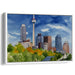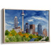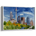 Introducing 'Urban Splendor: Watercolor City Skyline with Iconic Tower,' a vibrant canvas art piece that transports viewers into the heart of a bustling cityscape, capturing the essence of urban sophistication and architectural marvels. This captivating artwork showcases a skyline dominated by a majestic tower, surrounded by modern skyscrapers that reach towards the vivid blue sky, creating a dynamic and lively depiction of urban life.