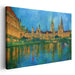 Introducing "Urban Strokes Symphony," a captivating cityscape canvas art print that transports viewers to a historic European city, showcasing grand architecture and tranquil water reflections. This mesmerizing artwork is a symphony of rich, vibrant hues that evoke both serenity and awe, with a dominant vivid blue representing the sky and water, complemented by warm yellows, oranges, and greens highlighting the buildings and their mirrored images.